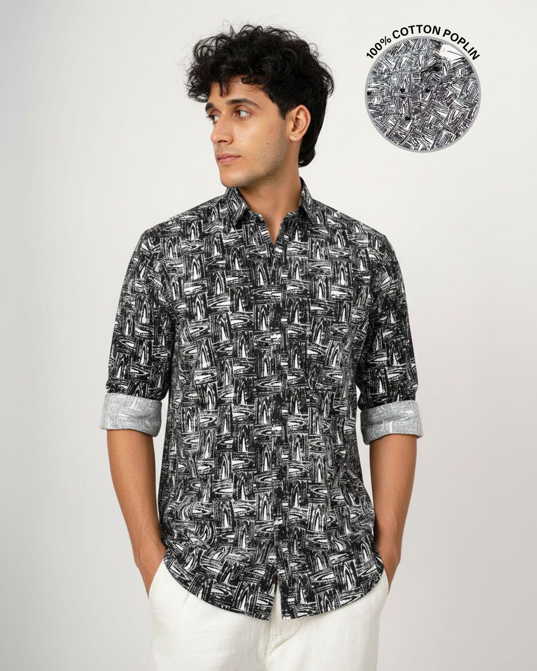 Gray Nature Weave Cotton Poplin Half Sleeve Shirt