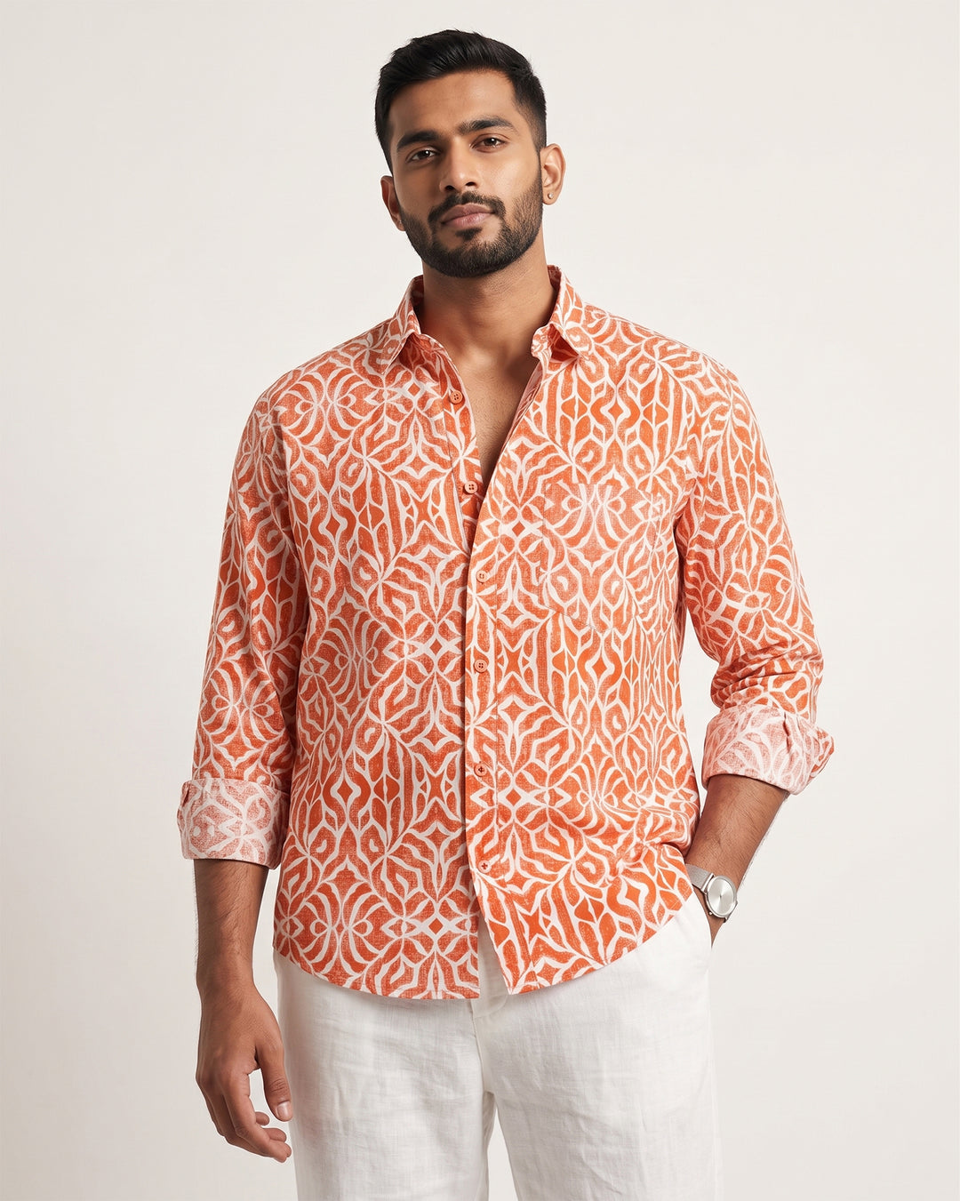 Maroon Ornate Cotton Poplin Half Sleeve Shirt