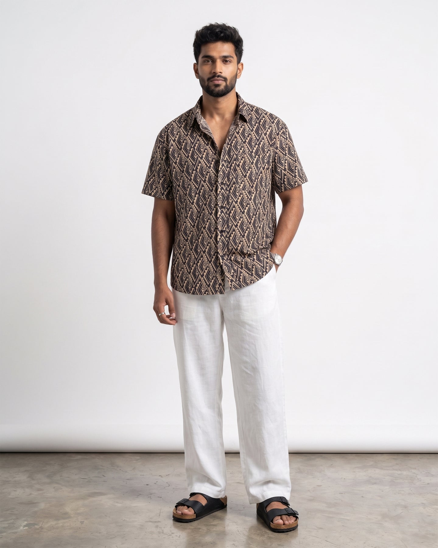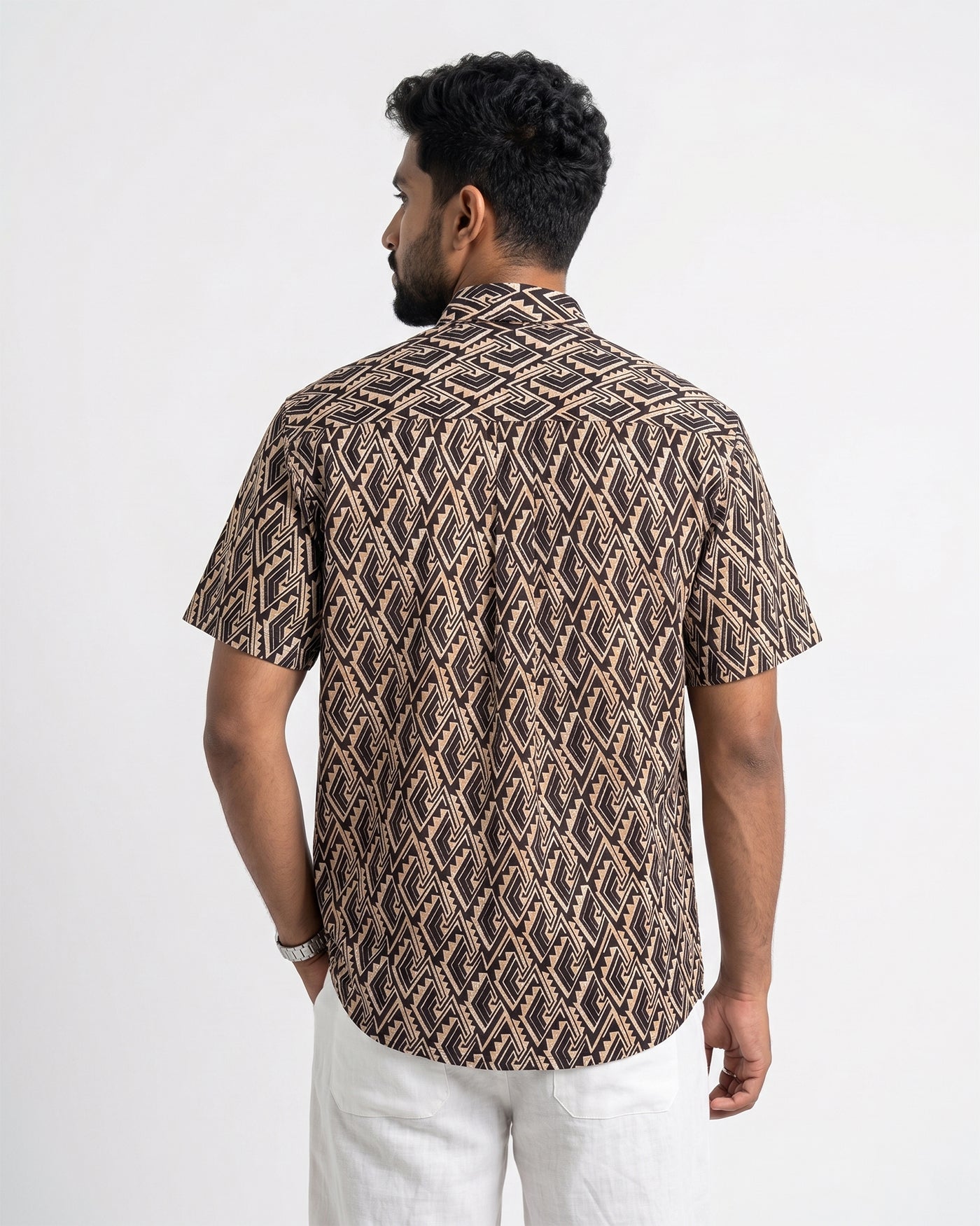 Regular fit black-brown printed shirt for men in breathable cotton. Casual yet elevated, crafted for comfort, character, and everyday refinement.