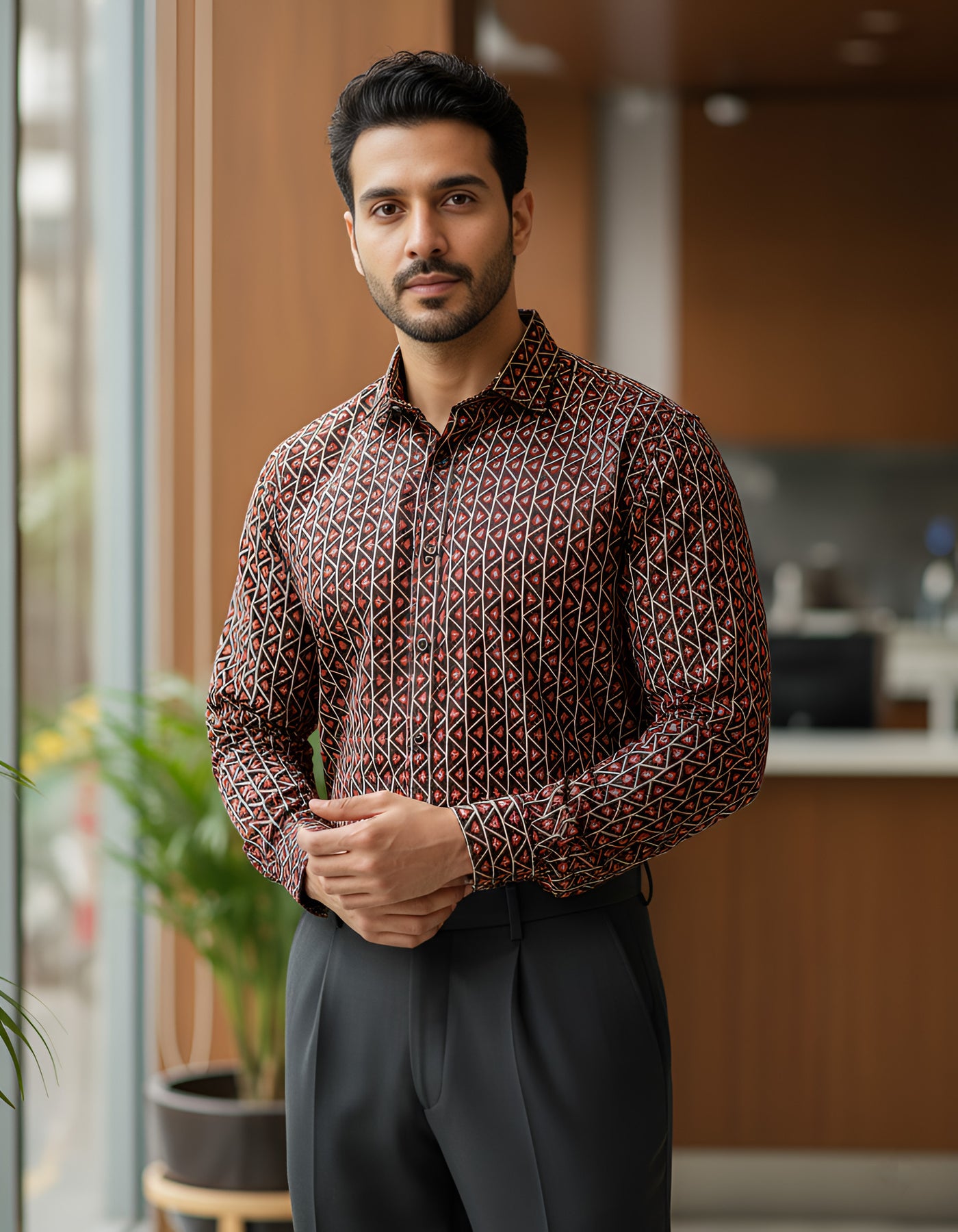 Regular fit black printed shirt for men in breathable cotton. Casual yet elevated—crafted for comfort, character, and everyday refinement.