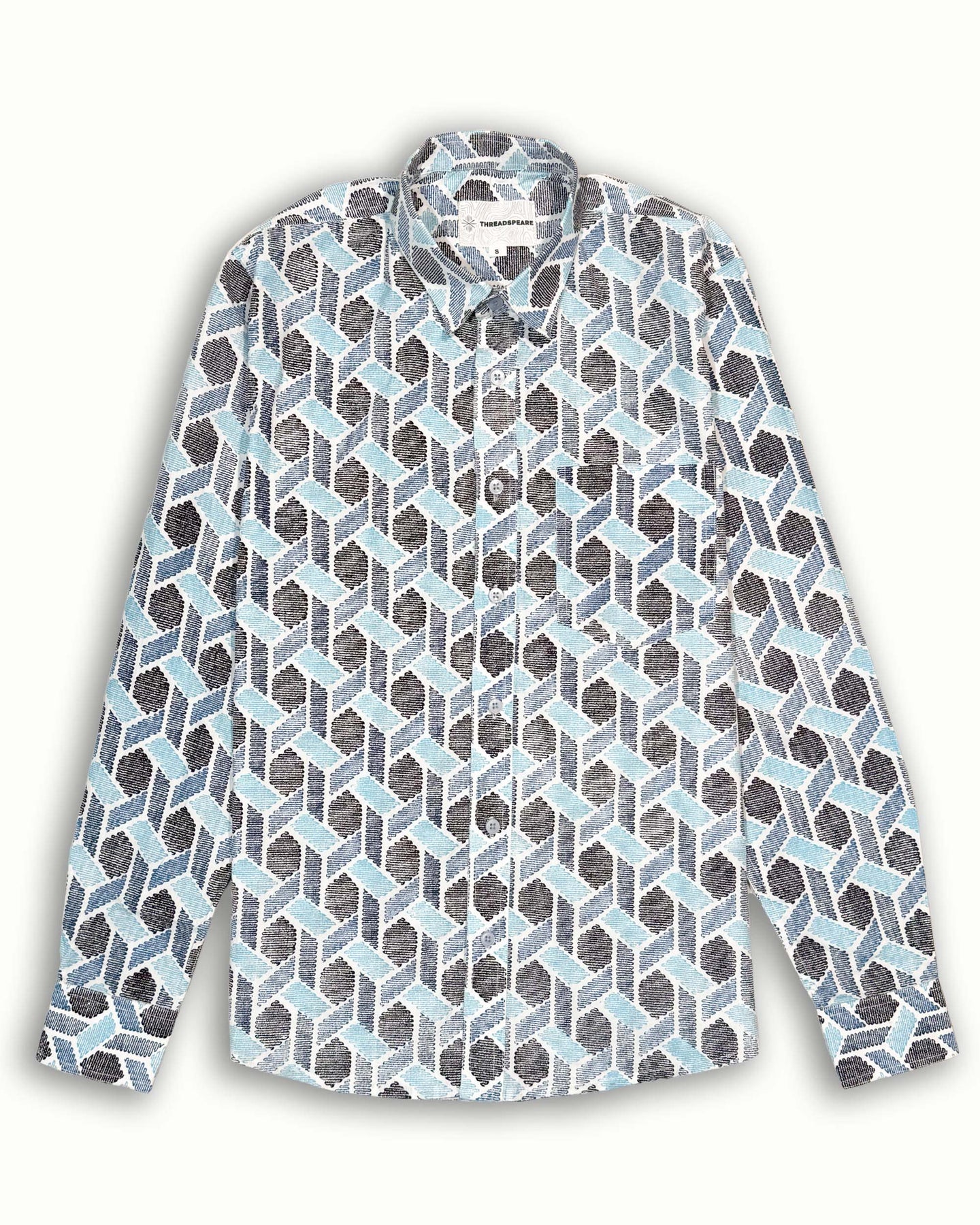 Regular fit blue printed shirt for men in breathable cotton. Casual yet elevated—crafted for comfort, character, and everyday refinement.