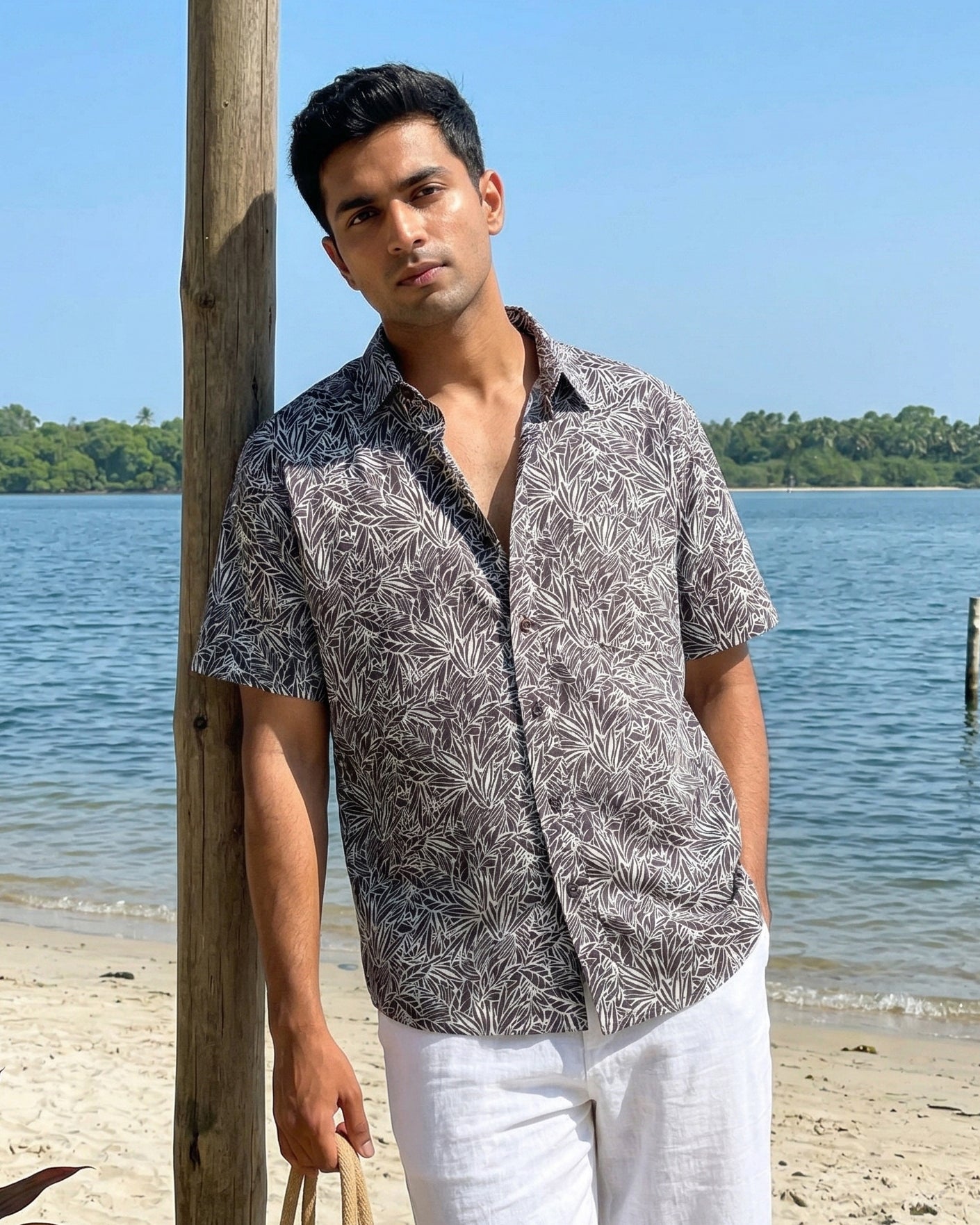 Regular fit gray printed shirt for men in breathable cotton. Casual yet elevated, crafted for comfort, character, and everyday refinement.