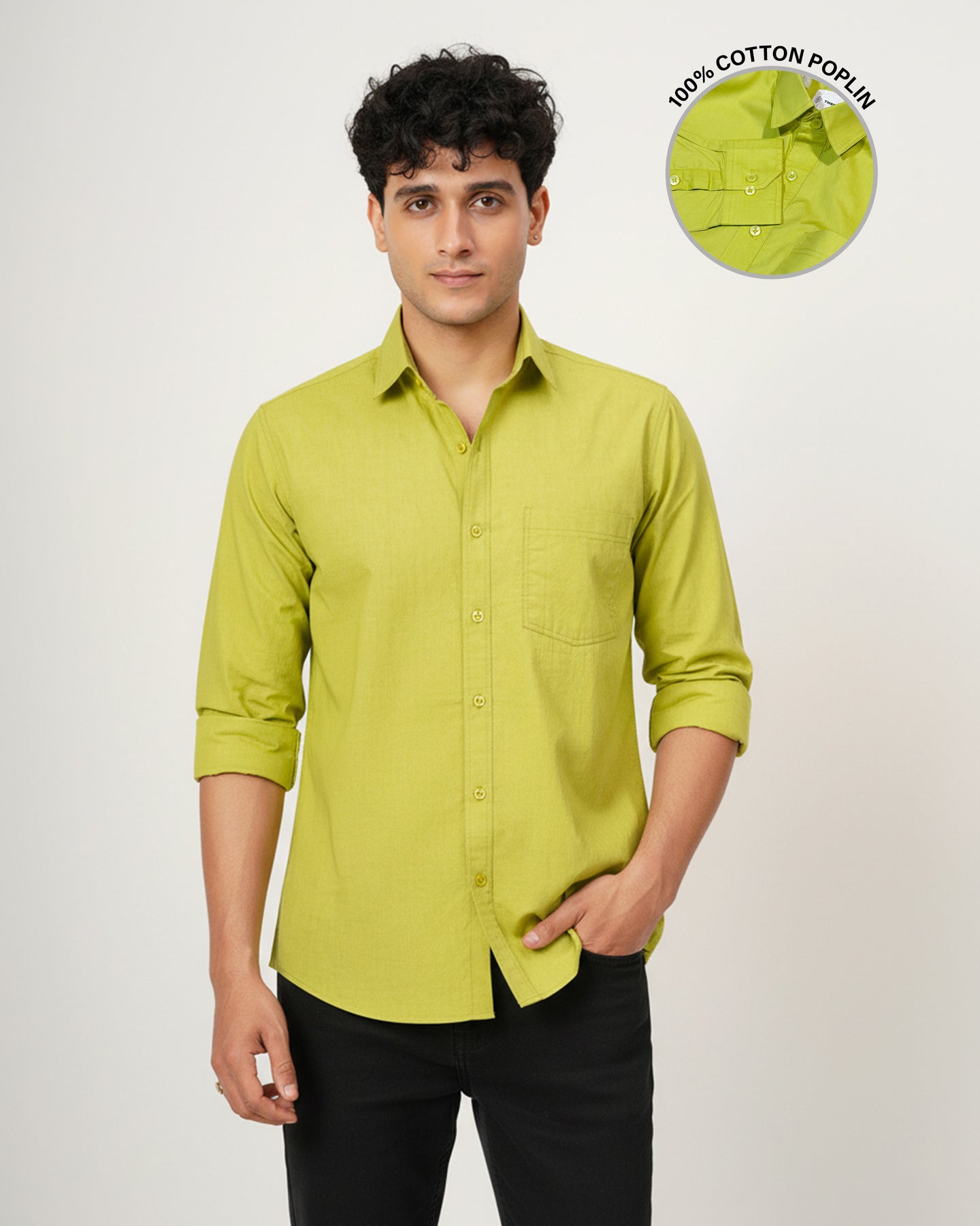 Regular fit green shirt for men in breathable cotton. Casual yet elevated—crafted for comfort, character, and everyday refinement.