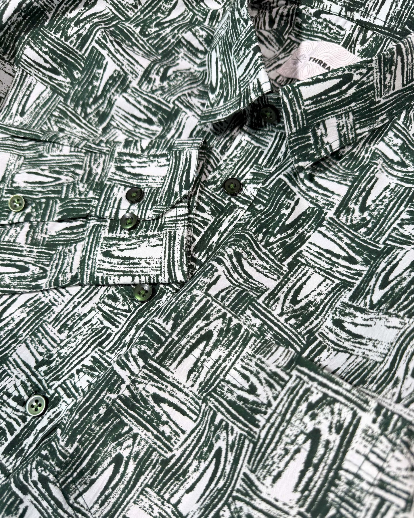 Regular fit green printed shirt for men in breathable cotton. Casual yet elevated—crafted for comfort, character, and everyday refinement.