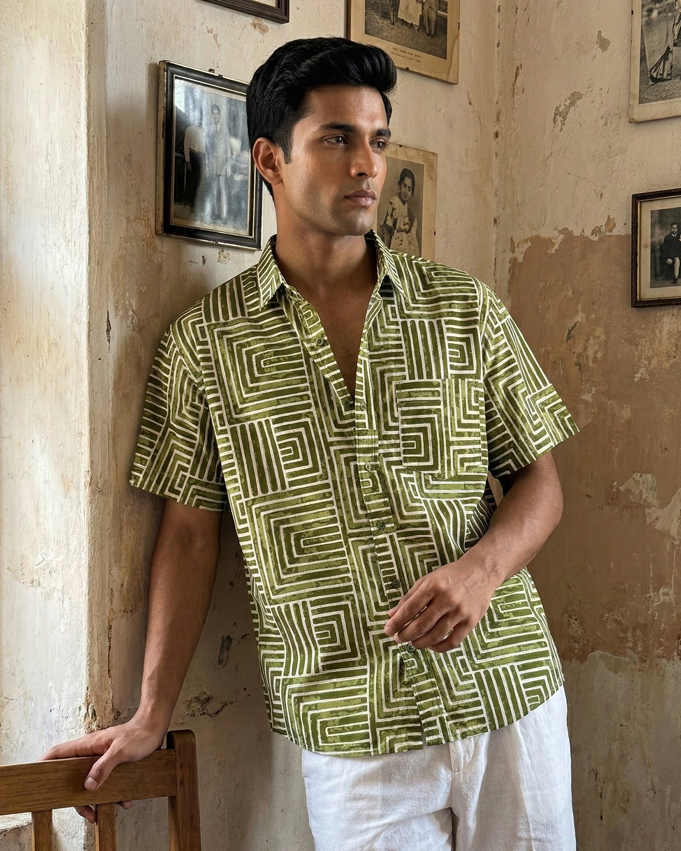 Regular fit green printed shirt for men in breathable cotton. Casual yet elevated, crafted for comfort, character, and everyday refinement.