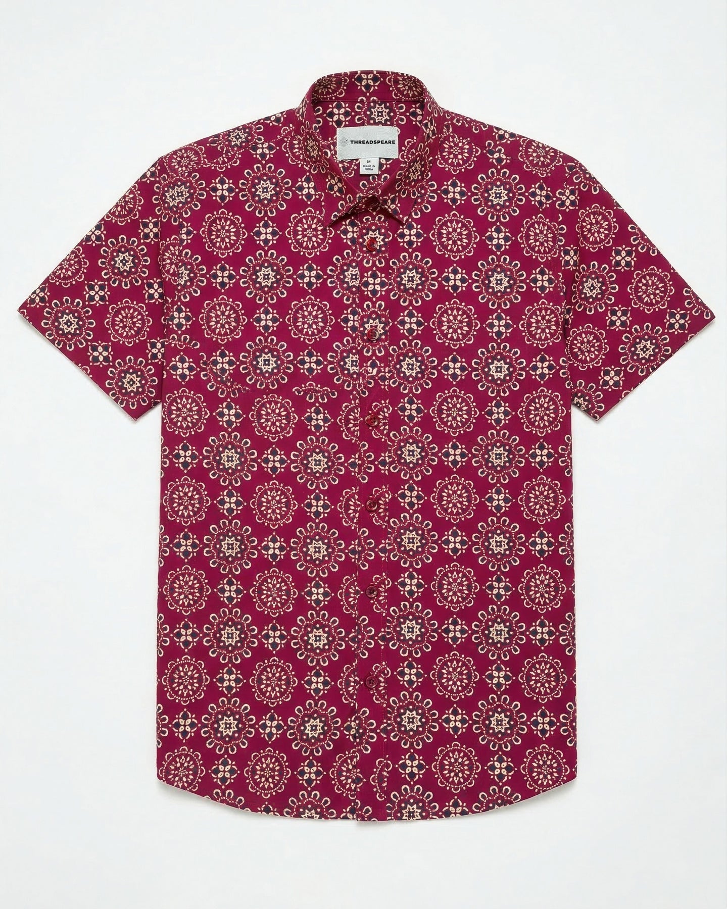 Maroon Ornate Cotton Poplin Half Sleeve Shirt