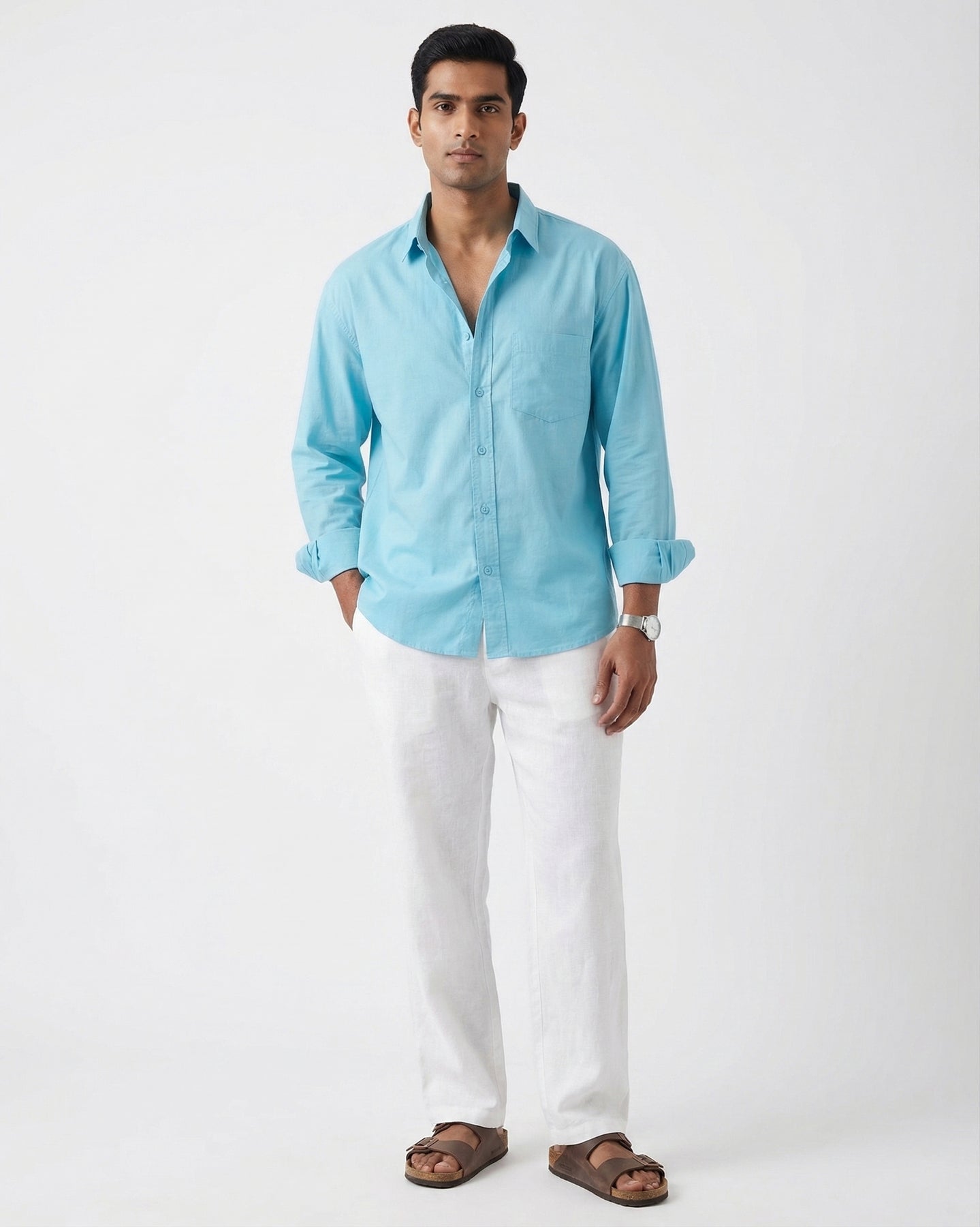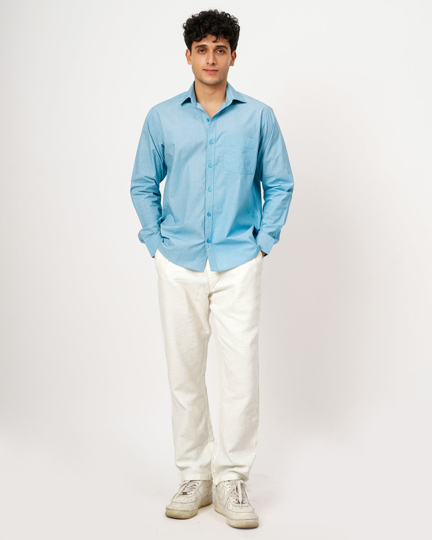 Regular fit blue shirt for men in breathable cotton. Casual yet elevated—crafted for comfort, character, and everyday refinement.