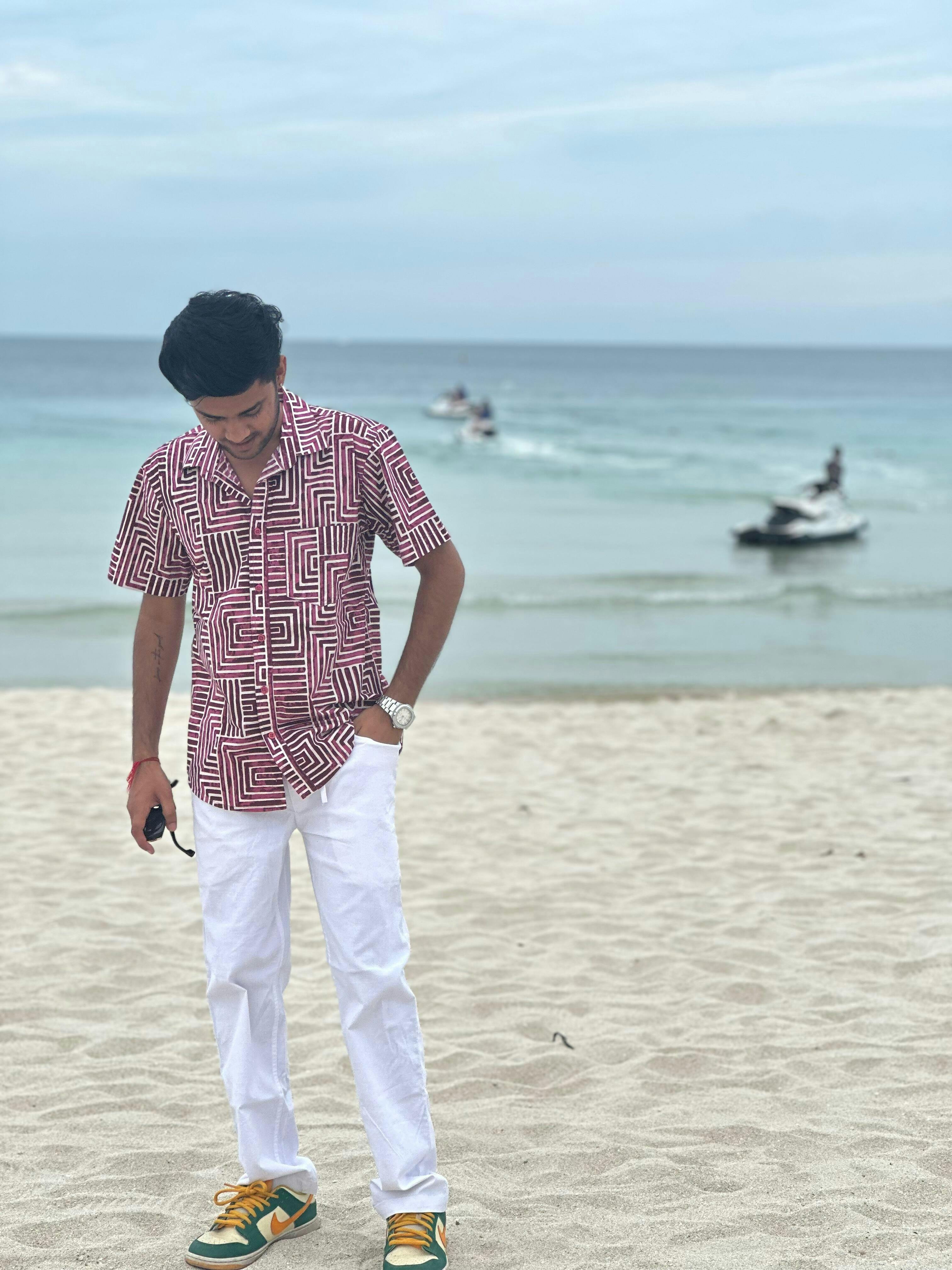 Regular fit wine printed shirt for men in breathable cotton. Casual yet elevated, crafted for comfort, character, and everyday refinement.