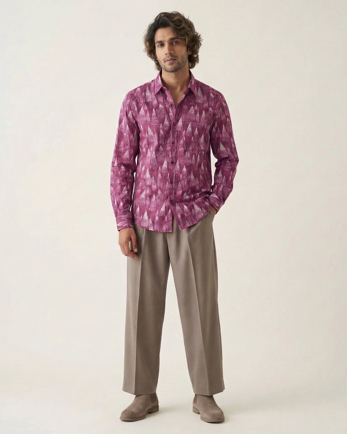 Regular fit wine printed shirt for men in breathable cotton. Casual yet elevated—crafted for comfort, character, and everyday refinement.